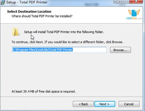 2、双击TotalPDFPrinter.exe开始,依次进行安装,选择默认安装路径