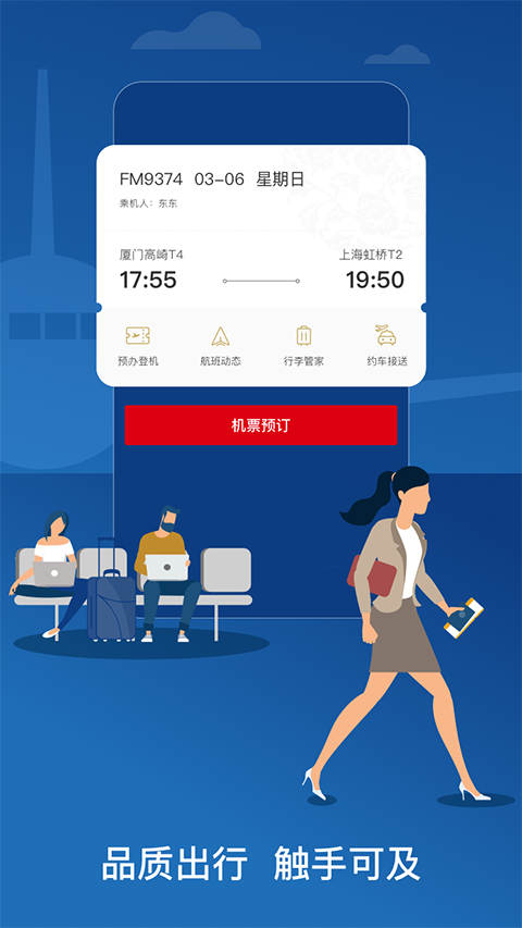 1、机票预订——快捷预订国内/国际单程、往返机票,支持在线退改升服务。 2、航班动态——国内/国际航班动态全掌握,支持前序航班查询功能。 3、接机送机——提前计划安排,满足出行需求,旅途省时、省心、省力。 4、酒店预订——特惠酒店超值选择,海量酒店房型照片以及真实住客点评,轻松入住方便快捷。 5、会员服务——支持东方万里行会员注册登录,实现账单查询、里程查询、受益人查询等功能。 6、手机值机——手机办理自助乘机手续,个性化选座,无需到机场排队等候。 7、人文关怀——支持无成人陪伴儿童、小动物运输、服务犬等特殊旅客服务线上申请。 8、航班改期——目前适用于东上航的国内航班的不正常航班自助改期服务。东方航空怎么注册会员