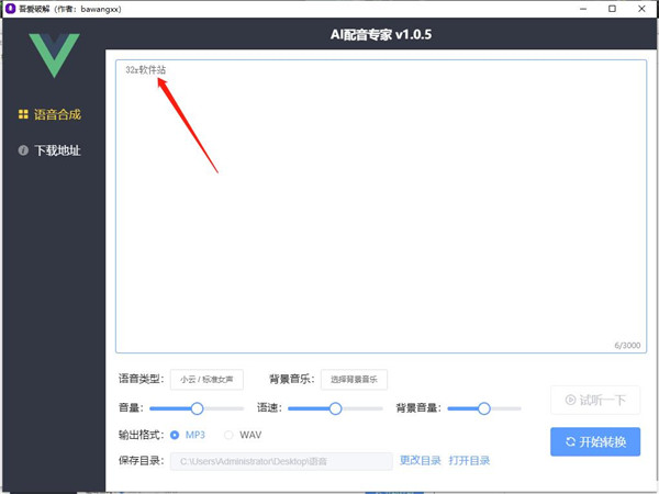 本站为用户提供AI配音专家免费版,这个版本由爱破解坛友上传,已经免去了用户使用注册码注册的环节,也无需安装,亲测可用,并且里面附带了部分背景音乐包,有兴趣的小伙伴快来下载体验吧!