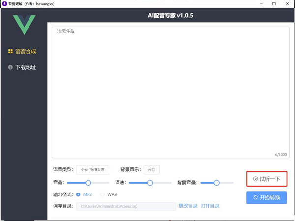 5、支持试听,可试听转换后的语音文件