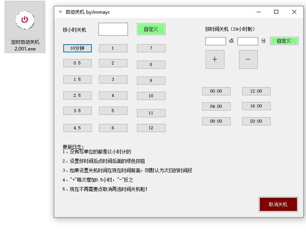 windows定时关机脚本(自动关机)v2.001绿色版(2021-09-29)1、所有未填写单位的都是以小时计