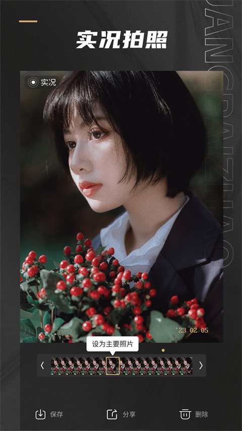 1、一键出片:只需按下快门,即可拥有真实的胶片质感,一秒变高级 2、实况拍照:解决一个动作反复拍无法拍出满意照片的难题,轻松选出最美一帧 3、收藏夹:收藏6款常用相机,方便快速开启拍摄 4、实时预览:取景框实时预览效果,所见即所得 5、导入图片:支持照片导入,给喜爱的照片添加复古胶片感 6、翻转镜头:前/后置摄像头自由切换,自拍情绪大片 7、闪光灯:暗光下搭配闪光灯,拍出氛围感冷白皮,奶油肌 8、手动调参:支持手动对焦,曝光调节 9、倒计时功能:释放双手,有助于在自拍时调整动作和表情 10、辅助构图:开启网格辅助线,让构图更容易 11、经典时间戳:还原年代感,可自定义日期,让照片坐上时光机Remo复古相机软件怎么使用?