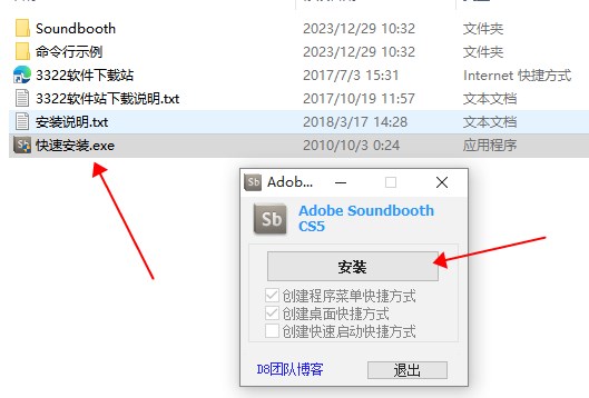 1、无需安装,下载数据包后解压,鼠标双击“快速安装、exe”跳出窗口中直接点击“安装”即可