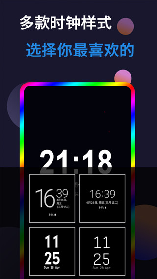 1、息屏时钟 2、边缘跑马灯 3、七彩闪光灯 4、呼吸灯设置 5、边框美化更新日志