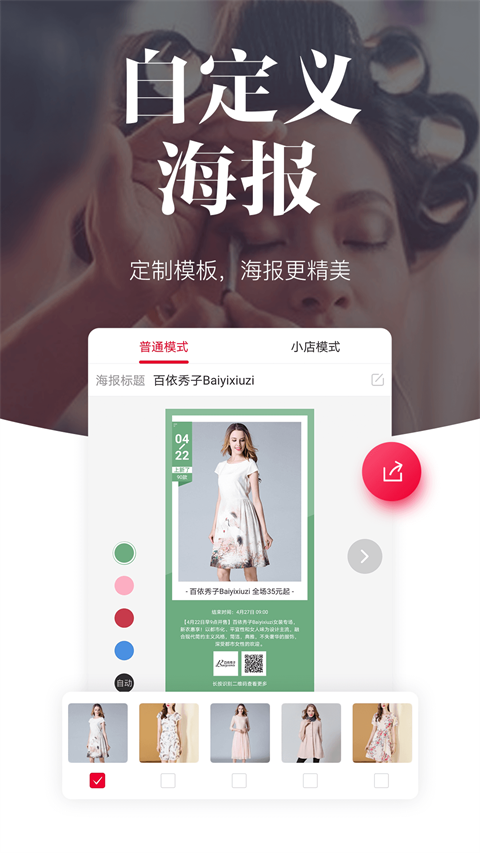 1、佣金奖励:设置普通用户、VIP用户分级模式和销售阶梯返利政策,普通会员享受自购销售最高15%的佣金,VIP用户享受自购销售最高25%的佣金。 2、品牌货源:与6000家全球知名品牌长期合作,直接与品牌商拿到一手库存货源,平台对合作的供应商严格考察,从源头杜绝假货。 3、正品保证:唯代购每一件所售商品均为正品,由中国人保承保。品控团队接近1000人,打造严格的质量检查体系。 4、物流保障:平台全额承担物流费用,全国6大物流仓储中心,让用户在最短时间内收到商品。软件亮点