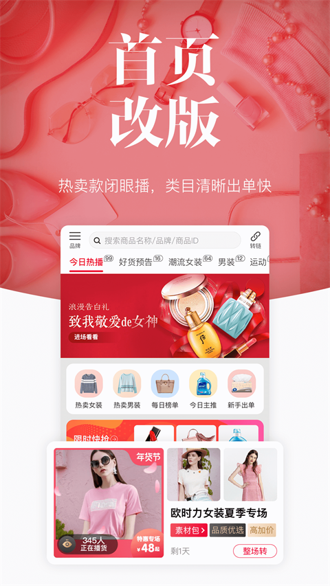 1、主要服务于广大代购、批发群体的专业平台 2、一端对接品牌方,提供第一手折扣货源;另一端连接专业代购、微商和中小型批发商 3、目前,平台与6000多家全球知名品牌达成深度合作 4、覆盖男女服装、童装、箱包配饰、运动鞋类、美妆等多个领域,满足用户各种需求!更新日志