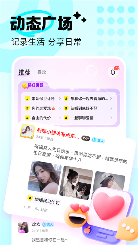 1、打造全新的优质社交,高效社交体验更佳快捷。 2、感受更多全面的社交玩法,帮你轻松互动。 3、认识各种有趣的人群,为你带来丰富的人群认识。 4、享受安全可靠的交友环境,带给你超多语音聊天。更新日志