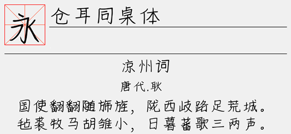 仓耳同桌体字体是一款赏心悦目、百看不厌的手写字体,这款字体书写自然流畅,笔画转折处遒劲有力,张弛有度,字形笔画棱角分明,具有很强的学生时代的书写气息。整体结构较为秀气,没有常规字的舒服,更显得十分恣意和洒脱,给人青春飞扬的时代感。字体笔画撇捺较细,转角以曲线处理,给人一种独特的个性化设计感。可以很好的应用于文本装潢、信息展示、网页设计、篆刻制模、数据制作、装潢设计、计算艺术设计、视觉设计、字帖等一切合法应用场景,有喜欢的朋友可免费下载收藏。