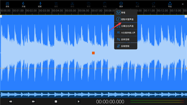 4)点击菜单栏的“更多”,选择“提取中置声道”。