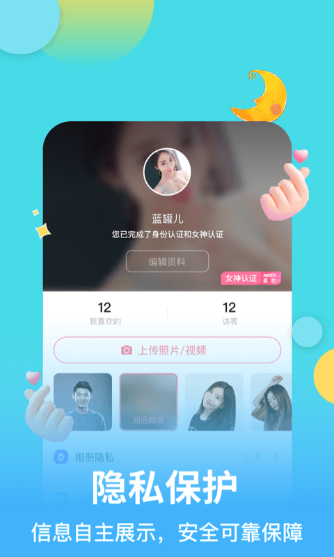 2、之后你需要完成资料的填写,像头像、昵称、城市、交友目的等等。