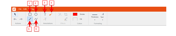 1、矩形: 允许使用矩形形状突出显示或模糊处理视频的某些部分。 2、椭圆:允许使用椭圆形突出显示或模糊处理视频的某些部分 3、文本:允许向视频添加文本 4、箭头:允许指向视频的特定区域 5、线: Use this to draw a simple line (使用此函数绘制简单线条) 6、绘制铅笔: 铅笔工具可在视频上创建自由形状或手绘 对于每种元素类型,都有一组特定的属性可用于更改元素的外观(例如,边框粗细、边框颜色、填充颜色、字体样式和字体大小)。您可以在选择现有元素后更改该元素的选项,也可以在选择绘图工具后更改要绘制的下一个元素的选项。