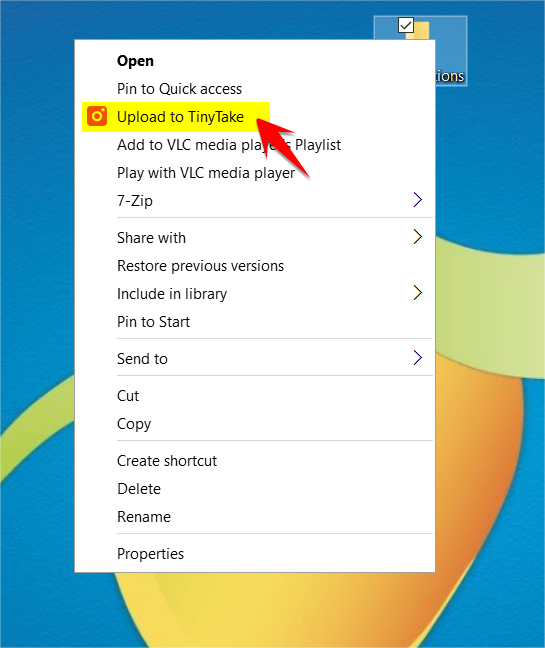 1、右键单击本地驱动器中的文件或文件夹,然后单击上传到 TinyTake。您将看到 TinyTake 对话框,显示上传进度,完成后会生成一个链接,您可以与任何人分享。