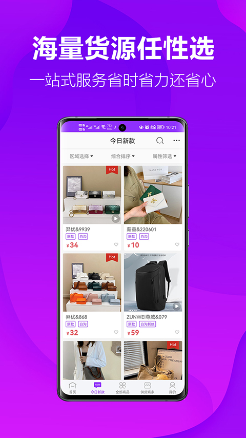 1、汇总以前爆款,除了当下最新的爆款箱包之外也能知道以往爆款过的箱包。 2、海量供求信息,根据箱包的供求信息则可以为供应商与需求者提供客户与货源。 3、代发商在线服务,需要物流服务的话即可在此找到代发商处理运输的问题。 4、一键拍照晒单,利用内置的相机则可以直接拍摄箱包图片进行上传。 5、支持视频导购,观察箱包细节的时候能够借助视频而无死角了解商品。 6、推荐今日新款,这里的箱包不仅具备经典老款而且能够及时推送今日最新款。软件特色