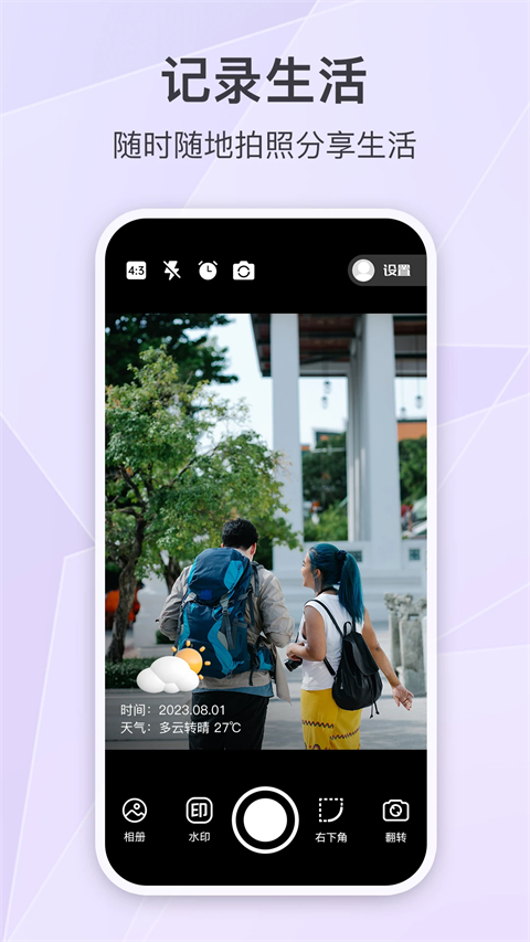【自定义水印内容】 可自由编辑和修改水印时间和地址,支持拍摄和从相册选择照片来添加各种水印,可以改变水印颜色和大小。 【多样化水印模板】 工作、抗疫、时间、地点、经纬度、海拔、天气、心情、打卡、工程、巡逻等多样化模板,真实还原工作及生活的需求,同时满足用户对水印相机不同场景模板的需求。 【自定义时间定位】 定制时间水印相机多种打卡专属水印模板,对标北京时间,精准锁定当前地点位置,轻松考勤打卡,记录美好生活,相机水印时间、定位实时更新,让你定位更便捷。 【相机认证拍照模式】 自动对焦,精准拍照,帮助您一键生成高质认证照片,图片给到认证编号、二维码、真实的时间和地图定位定制时间水印相机适用场景