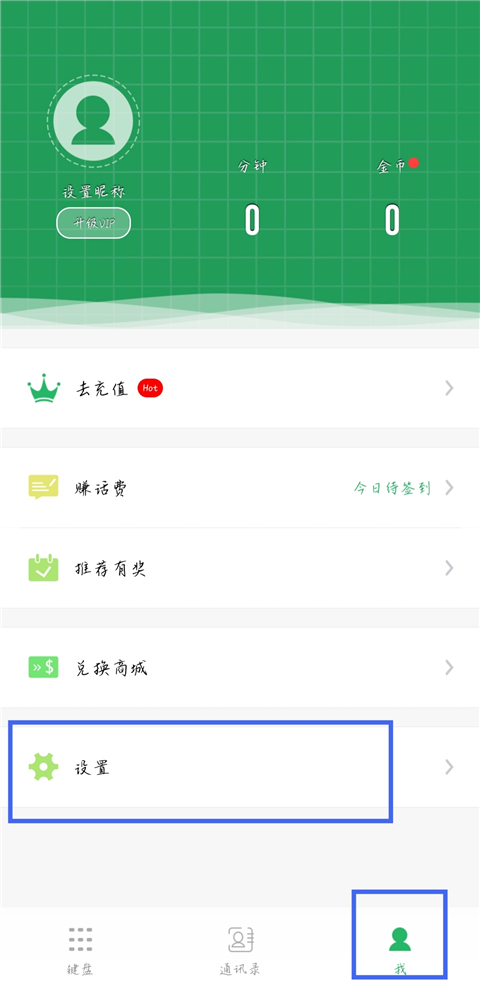 1、打开北瓜电话app,进入【我】页面,点击【设置】。