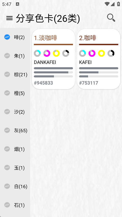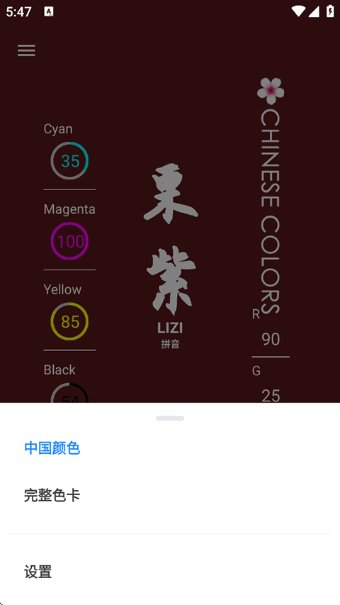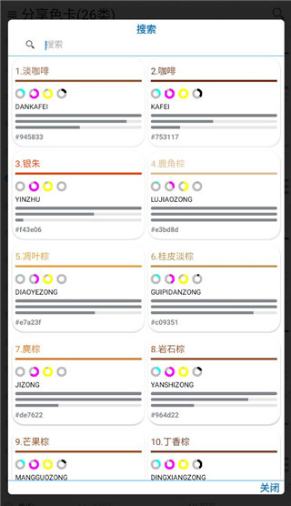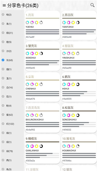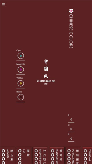 1、显示了非常清晰的颜色参数,里面的颜色还展示非常专业的参数信息 2、融合了许多观念,涵盖来自自然、宇宙以及伦理和哲学等方面的理念内容 3、展示多样的颜色展示内容,每个展示页面都展示中文名,还有拼音等内容 4、丰富的颜色命名,其中有葡萄酱紫、香叶红、中国红以及栗紫等多种命名软件亮点