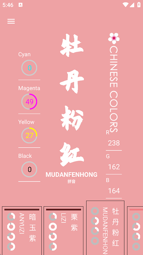 1、打开软件,可以里面有各种颜色,像经典的暗玉紫、牡丹粉、香叶红等