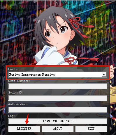 3、然后运行注册机程序"Product"栏目选择"Native Instruments Massive",然后点击"REGISTER"即可破解成功