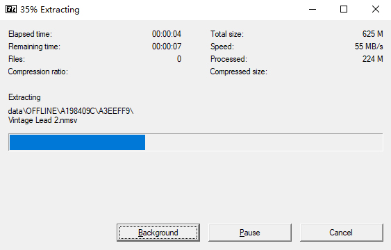 1、首先将软件资源包下载到电脑上后解压出来,得到资源文件后运行名为“Massive 1.5.5 Setup PC.7z.exe”的7Z压缩程序,设定安装文件释放路径后,开始进行释放
