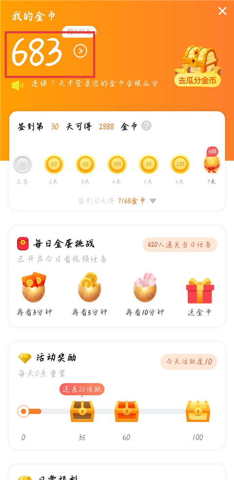 2、点击金币。