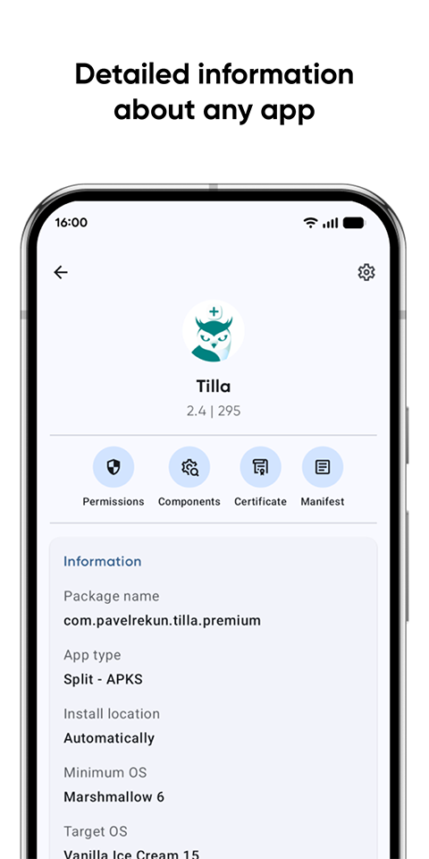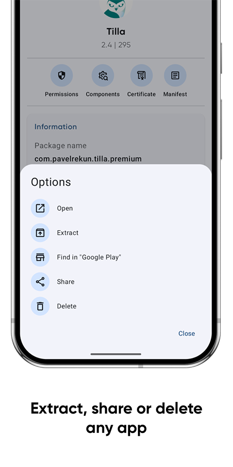 1、完全控制 从任何应用程序(甚至系统)中轻松提取.APK文件,并以您喜欢的任何方式将其发送给您的朋友。您也可以删除任何用户应用程序而不会出现任何问题。 2、关于一切细节 该应用程序提供了有关所有用户和系统应用程序的大量详细信息。从安装日期和应用程序的最后更新日期,到.APK文件占用的内存量等大量的详细信息。 3、应用层次结构 从内部找出所选应用程序的工作方式。活动,服务,使用的权限列表以及应用程序签名证书的详细信息都在您手中。软件功能