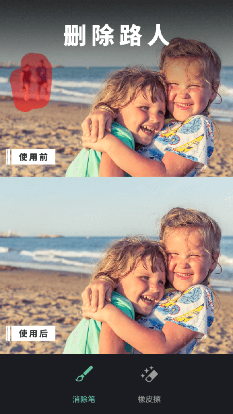 1、【修图去水印】 修复照片、retouch、PS软件、照片编辑、美图软件、去水印、天天P图片、修图、马卡龙图片、全民P图、图片美化、制作美图、P图软件、贴纸、文字、图片编辑专业工具、滤镜,快速删除照片多余的对象,为你打造高品质专业大片! 2、【删除物体】 拍照担心被乱入?照片有水印?垃圾桶路标不美观?皮肤有瑕疵? 不用担心,删除物体,可以删除你认为破坏照片美观的任何对象 3、【克隆印章】 选中笔刷,长按,可以在设置里选择大小长度,进行克隆选中的对象,有多种镜像类型可供选择。克隆复制,3秒实现 4、【快速修复】 只需标记图片中不想要的物体,就能让它们从中消失,触摸细小瑕疵,永久删除。快速修复美观图片 5、【编辑图片】 修复后的图片,经过滤镜、贴纸、文字多种方式制作,尽情使用,带来更多创作灵感软件优势