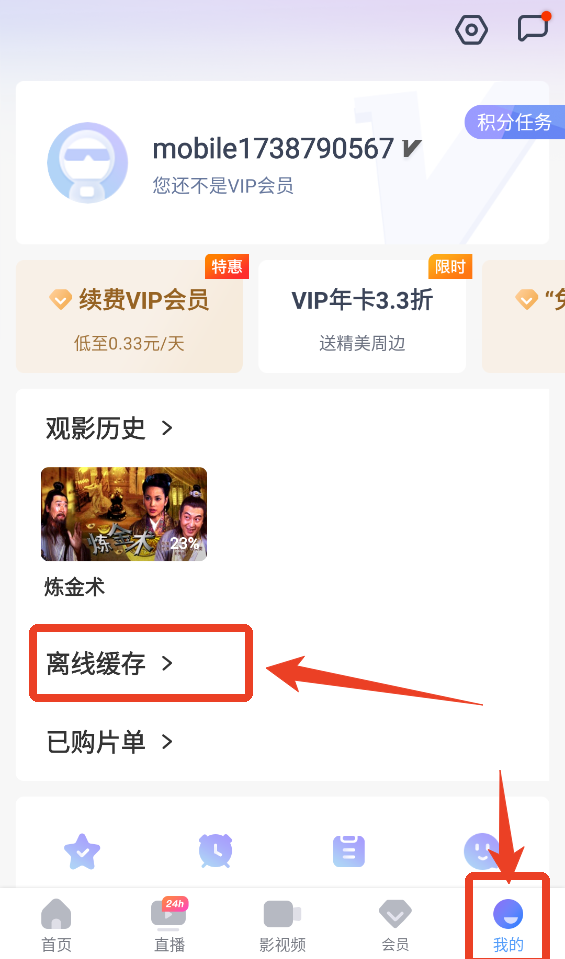 4、下载完成之后,可前往【我的】-【离线缓存】可查看刚刚下载的电影。