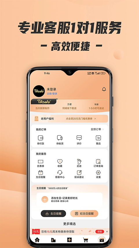 1、包含的商品类型多样,品种齐全,涵盖了网红蛋糕、慕斯蛋糕、水果蛋糕等。 2、支持全国范围内进行配送,自动根据收货地址进行就近发货,让你及时收到新鲜的商品。 3、支持个性定制蛋糕,按照需求进行制作,任意咨询客服完成定制。 4、拥有贴心客服,为你提供一对一服务,高效便捷的解决用户遇到的问题。 5、详细介绍了商品信息,包括编号、尺寸、材料、保存方式等,也标注了各食材的含量。 6、提供了超多实用工具,比如有优惠券、收藏、足迹、会员等,丰富用户的使用体验。更新日志