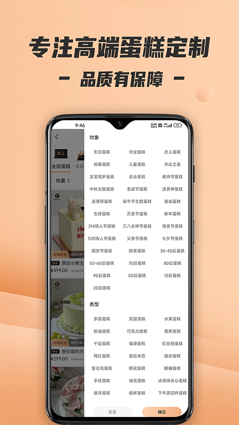 2、你可以在这里了解各种种类的蛋糕,还可以手动筛选具体细节。