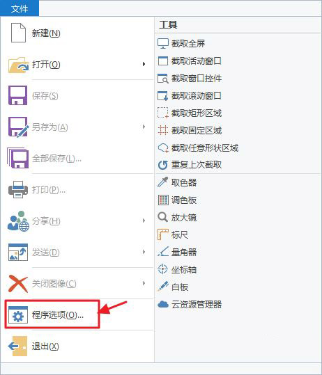 1、下载并安装PicPick软件,打开文件菜单,点击“程序选项”。