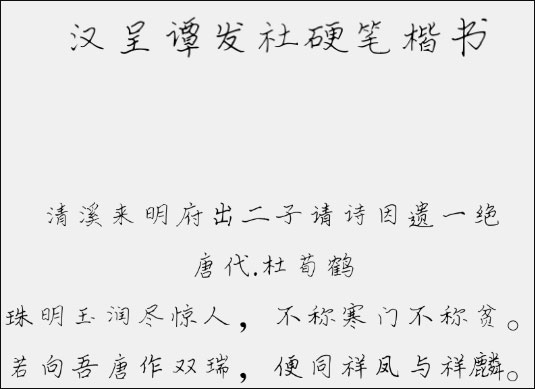 汉呈谭发社硬笔楷书是一款非常漂亮的书法字体,该字体是用钢笔手写而成,并传承了经典的楷书风格。字体给人感觉宽博而气势恢宏,骨力遒劲而气概凛然,充分彰显方严正大、朴拙雄浑、大气磅礴的气势。适应于报纸和杂志和书籍中常用字体海报、个性促进品牌标志设计、字体设计、文本装潢、信息展示、篆刻制模英文、数据制作、装潢设计、视觉设计、字帖等一切合法应用场景,有喜欢的朋友可免费下载收藏。