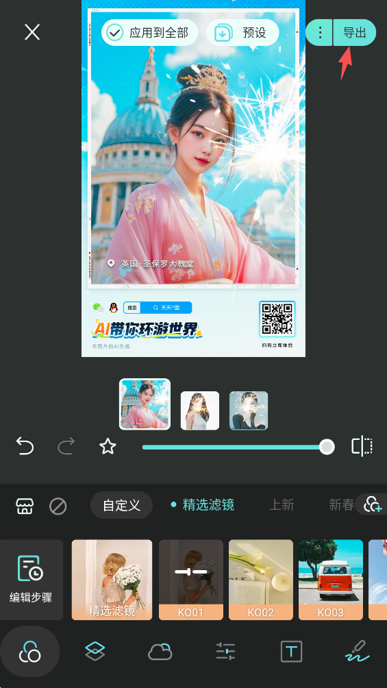 8、完成图片编辑后,点击屏幕右上角的“导出”。