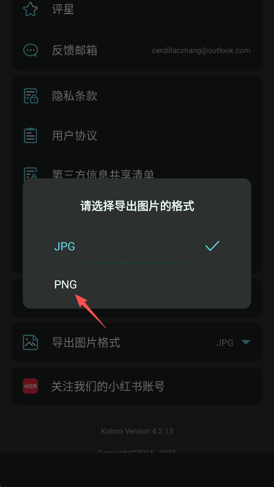 4、随后点击弹窗下方的“PNG”。