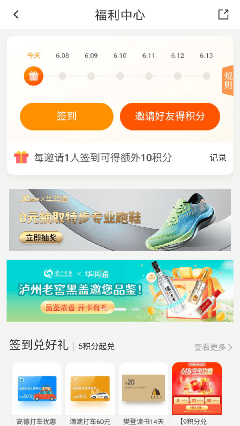 1、签到送积分:每日在华润通app签到奖励积分; 2、积分游戏:参与并完成平台推出的游戏或任务获得积分; 3、外部联盟商户:店家收银台付款时,提供手机号,可获1倍或多倍华润通积分; 4、华润万家/Ole'超市/blt超市:线下收银台付款时,提供手机号,可获1倍华润通积分; 5、太平洋咖啡:线下收银台付款时,提供手机号,可获1倍华润通积分; 6、万象城/万象天地/万象汇等:消费一周内到服务台,凭购物小票,可获1倍华润通积分; 7、华润通联名卡:本月刷卡金额,次月以每2元积1分的比例,转化为华润通积分。软件亮点
