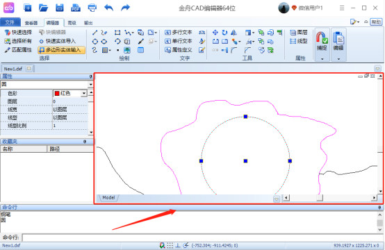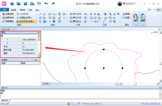 选中绘制的图形,这里就会显示该图形的基本属性,可以更改图形的基本大小、颜色、位置、面积、线条粗细等。