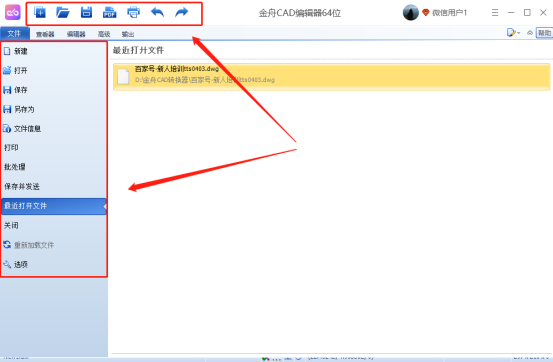 1、文件 如图,在软件界面上方,以及左侧文件中,分别可选择新建、打开、保存、另存为、打印文档,支持快捷打开历史文件,批量处理文件等操作。