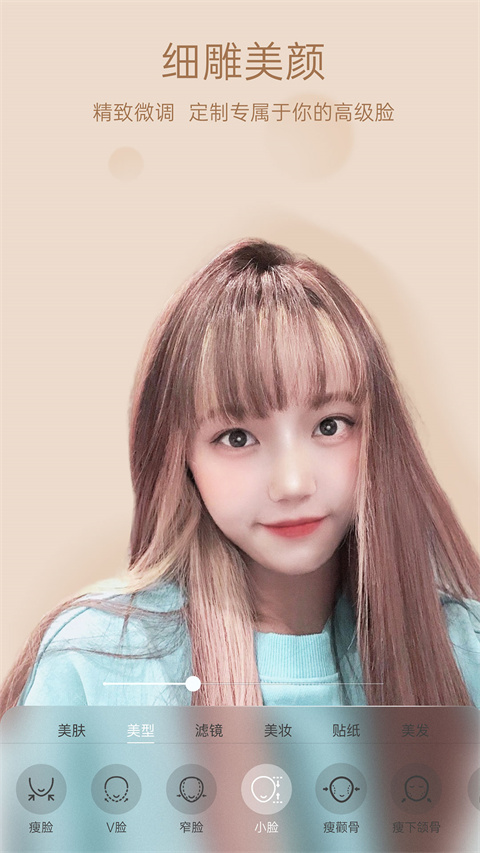 【质感细节】磨皮保留皮肤细节,拒绝假面呈现高级效果,超多美化功能,秒变精致小仙女! 【瘦脸瘦身】轻轻一拖,想瘦哪里瘦哪里!完美比例拖出来! 【面部重塑】神奇捏脸术,哪里不满意捏哪里,仙女的颜360°无死角! 【精致美肤】脸上长痘,毛孔变粗,皮肤晒黑不用怕,悦颜美颜精细磨皮,美白,红润,亮眼等,你想要的全都有。让你在视频通话中保持粉嫩少女肌! 【自然美颜】你的美颜你做主,定制专属你美颜方案。从脸型到五官,每个细节都可以随意调整,给你超自然的美颜效果! 【细腻滤镜】Ins网红日杂风滤镜,使用场景全覆盖,细腻滤镜,让你颜值随时都在线!软件特色