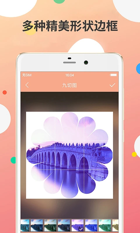 1、支持将图片裁剪为3x3, 2x2, 1x1, 1x3, 2x3的网格图; 2、支持17种常用形状裁剪,10+边框素材以及12种滤镜特效; 3、强大的拼图功能:支持对单张图片进行替换、旋转、翻转、缩放、拖动交换等功能; 4、预览分享顺序:帮助你轻松快速分享到微信,微博上。功能介绍