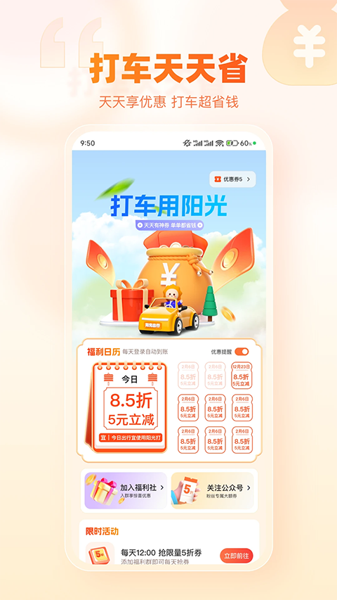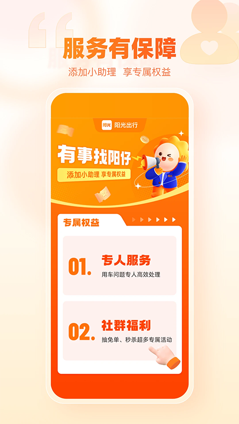 1、阳光出行是一款生活服务的应用软件,阳光出行是个新能源车共享平台 2、在线注册即可进行租赁,价格实惠操作简单,提供路线导航和充电站定位等功能 3、阳光出行app在原有“旅游用车和私人导游”优质服务基础上,覆盖包含接机、送机、接站、送站、导游、车导、马上用车、预约用车等多项服务内容软件功能