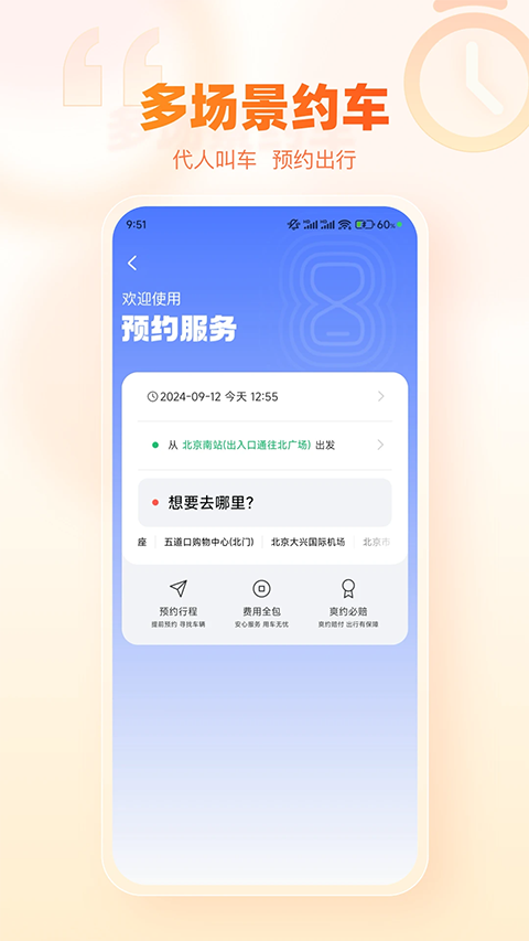 1、马上用车:随叫随走,马上出发 2、接送机:飞机晚点无限等,落地再等一小时 3、接送火车:专车一口价,高速不绕路 4、包车:八小时说走就走,全天候专人专车 5、导游:金牌服务小包团,全程纯玩无购物 6、专车+导游:专车司导一起约,高端私人定制游 7、丰富的车型:经济、舒适、豪华、六座商务、各类型巴士 8、多姿的导游:养生达人、知心姐姐、历史达人,型男、女神带您赏遍美景更新日志
