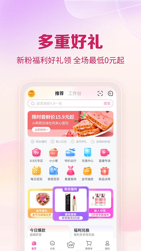 - 数码 美妆 服饰 箱包 水果等总计八大品类。 - 成为会员专享自购消费省钱,买的越多,返的越多。 - 会员分享商品给好友,好友下单即得佣金。 - 多地自建仓储,全国高效配送。 - 海量优惠,专享低价。更新日志