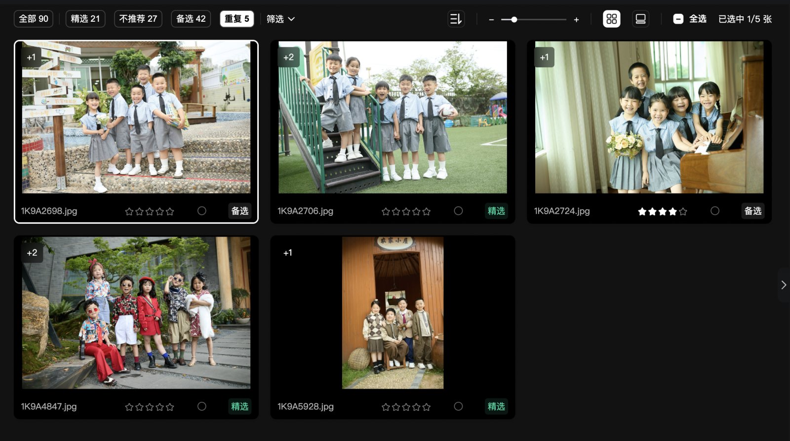 AI筛选时,会从一组重复图片中挑出最多一张精选图片作为封面图。如果该组图片都不符合美学标准,则该组精选图片数量为0。