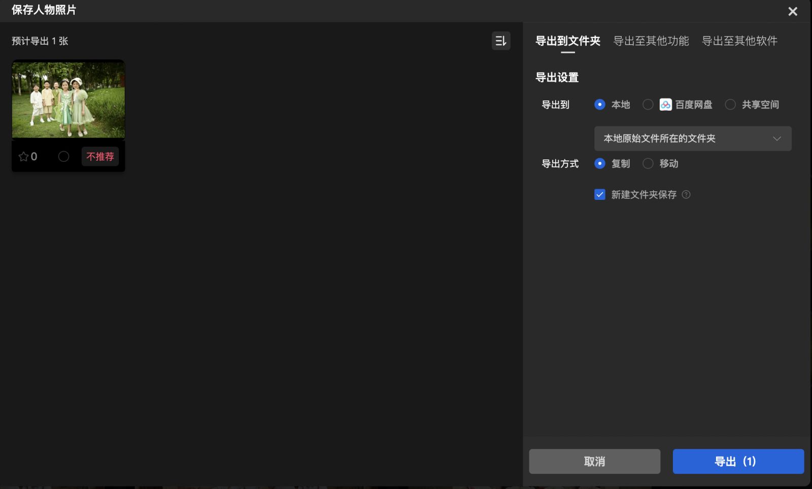 导出到文件夹:可以直接保存到电脑本地,也可以上传到百度网盘或共享云空间中