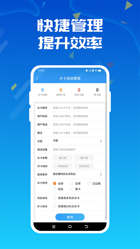 1. 通过App可以远程管理水站,办卡、充值、挂失、设置售水单价等等。 2. 水站运行状态实时监控,故障实时推送报警。 3. 水站运营状况统计,出水记录、消费记录随时随地查询。更新日志