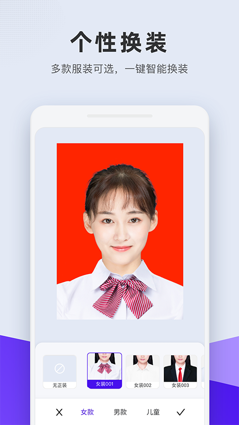 1、【多种规格】 目前已经收集了近500个尺寸规格供用户使用 2、【高清免费】 制作的证件照可以免费下载和保存高清照片到手机 3、【云端保存】 证件照可以免费且永久性的保存到云端以供下次使用 4、【一键换底】 一键抠图去背,多种去背抠图编辑功能,支持红蓝白等各色证件照背景 5、【一键换装】 提供多套常用正装模板,男女装等个性正装任您选择更新日志