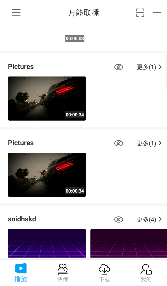 1、在本站下载安装万能联播app,打开应用,用户可以在播放栏中播放本地下载的视频。