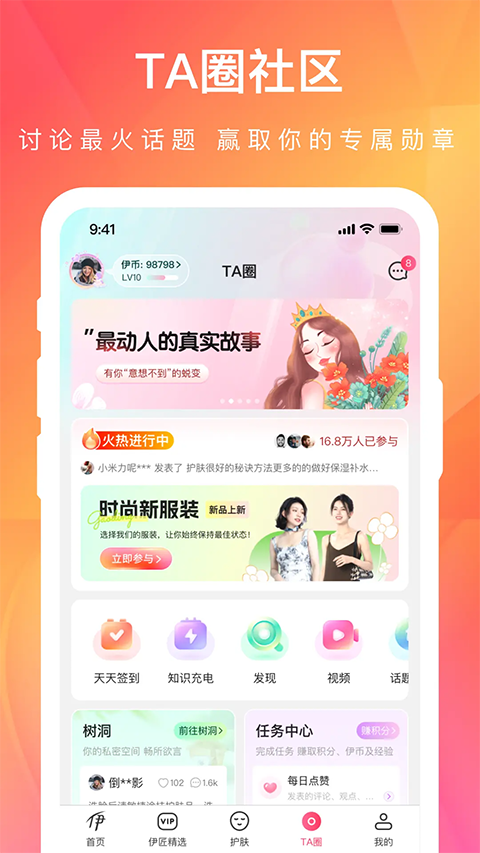 1、专供女性商品 这是一个女性专属的商城所以在此买到事关女性美丽、健康等方面的商品。 2、积分卡券抵现 在此购物的时候可以使用积分、卡券作为抵扣商品部分价格的资本。 3、每日都有特惠 选择这个商城的话则可以在每天参加这里的限时抢购活动。 4、护肤老师在线,想向专业老师咨询问题的话则可以在此找到在线的肌肤咨询师。 5、多维分析肤质 从分析报告之中可以知道自己肌肤的健康、水润以及周期、油腻、内调等指数。 6、晒单领取积分 收到商品的人只要在这里发布商品的图片进行晒单即可领取奖励积分。商城产品介绍