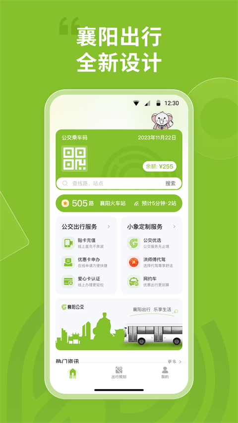 1、云账户 用户实名认证开通云账户,充值后扫码乘车,享受公交卡乘车同等优惠。 2、公交查询 随时查询公交车辆位置信息、进出站状态,公交乘车一切尽在掌握。可通过站站查询、线路查询、站点查询、线路规划四种方式进行查询,为您提供便捷的查询方式,准确的站点和线路信息。 3、网约车 襄阳公交集团开发的本地首家网约租车平台,一键下单快车、出租车,随时随地预约用车,为乘客提供安全、舒适、快捷的高品质出行服务。 4、定制公交 定制公交是针对市民差异化、多样化出行需求开展的服务,通过定制公交班车,能够有效对接乘客的实际乘车需求和乘车时段,旨在倡导绿色出行,节能减排,具有社会公共服务的性质。 5、爱心卡认证 通过人脸识别完成爱心卡线上认证,持卡片前往线下售卡充值一体机进行补登写卡。 6、充值查询 NFC手机贴卡充值襄阳发行的全国交通一卡通;NFC手机对旅游年票卡进行查询和年审续费。 7、网点查询 查询襄阳公交IC充值网点:含业务范围、营业时间、网点导航等。更新日志