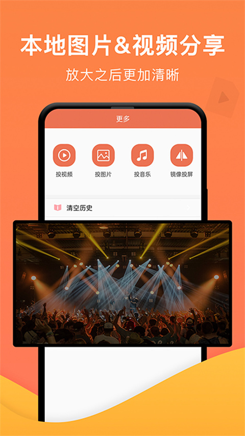 1、【全网投屏】 全网视频电视播放,大屏超强视听体验 2、【直播投屏】 直播平台快捷入口,居家直播的好伴侣 3、【本地投屏】 本地图片视频分享,放大之后更加清晰 4、【链接投屏】 链接投屏一键推送,多屏互动操作流畅一键投屏APP手机投屏步骤