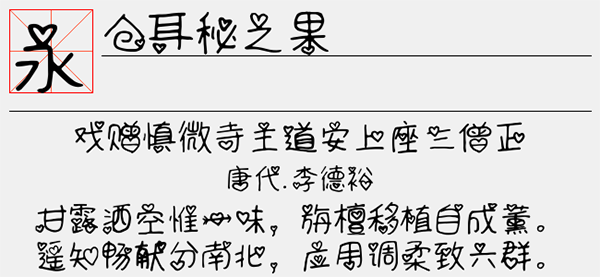 仓耳秘之果字体是一款非常可爱有趣的手写艺术字体,由仓耳字库全新研发打造而成。该字体,图案直接点缀在圆润可爱的字形上,给字体带来一种浪漫甜蜜的味道。同时该字体根据每个字的自身特点,设计出不同大小的心形的图案元素作为整体字体风格,并圆润的笔形是这款字的结构,由心形图案元素设计完成,简洁活泼,字体更显可爱彰显浪漫色彩。可以很好的应用于文本装潢、信息展示、网页设计、篆刻制模、数据制作、装潢设计、计算艺术设计、视觉设计、字帖等一切合法应用场景,有喜欢的朋友可免费下载收藏。